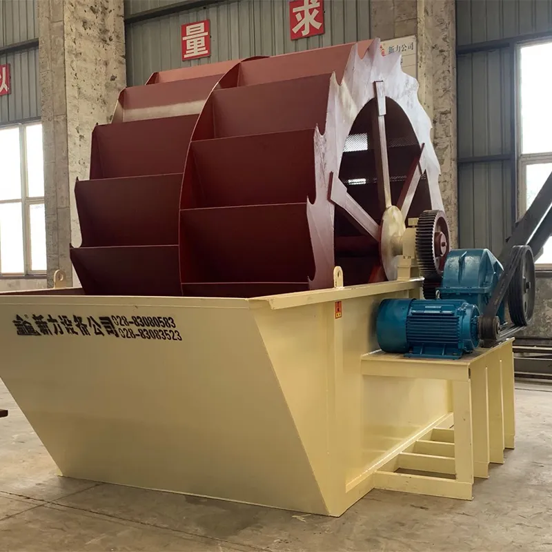 Пескомойка ковшового типа серии XS посредством привода от электродвигателя и редуктора приводит в непрерывное вращение рабочее колесо в резервуаре, которое совершает круговые движения в резервуаре, тем самым промывая, переворачивая и обезвоживая песок или частицы шлака в резервуаре перед выгрузкой.
